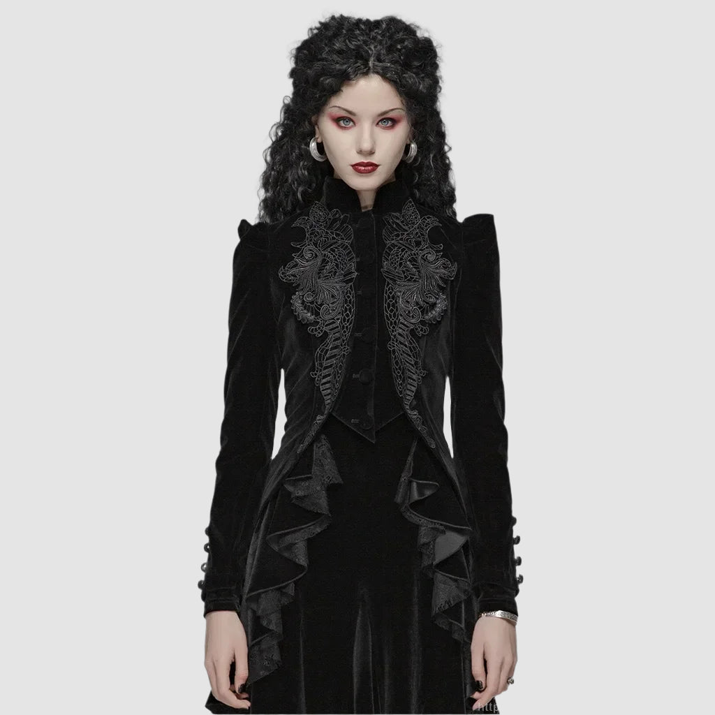 - Material: veludo preto com trama horizontal (100% poliéster)