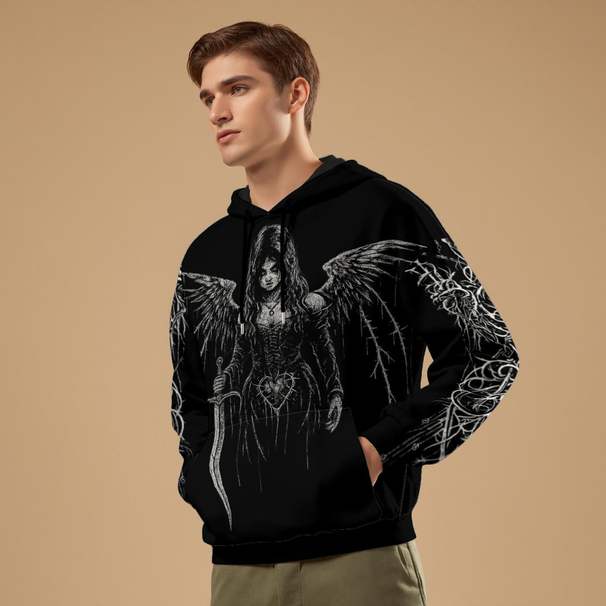 - Manga comprida, padrão felpudo no interior, com cordão, bolso canguru