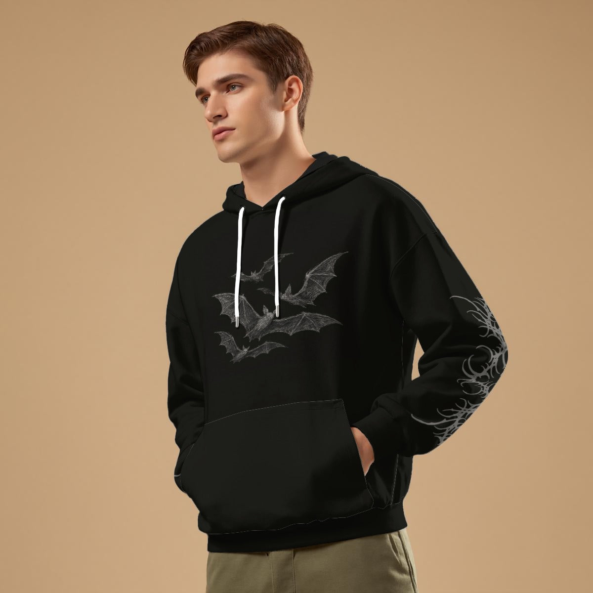 Feita 100% de algodão natural, a sweatshirt oferece conforto e durabilidade, e a sua trama densa (310 g/m²) protege perfeitamente contra o frio. Suave ao toque, agradável para a pele, ideal para noites frias e longos passeios melancólicos. O grande bolso tipo "canguru" e o capuz clássico com cordões adicionam funcionalidade, mantendo um caráter minimalista.
