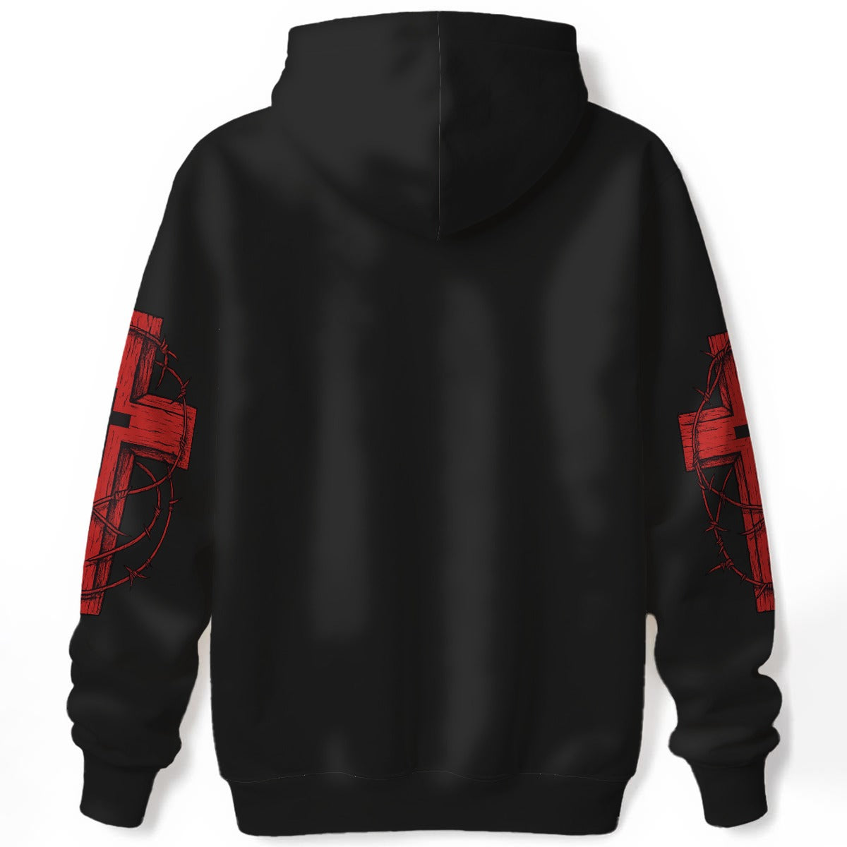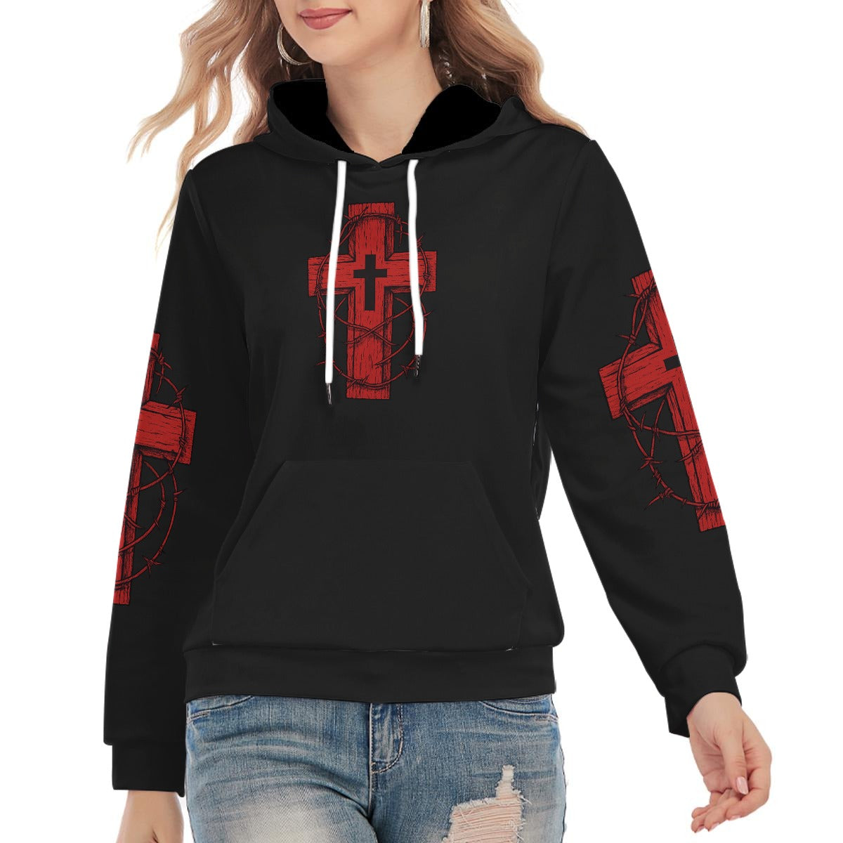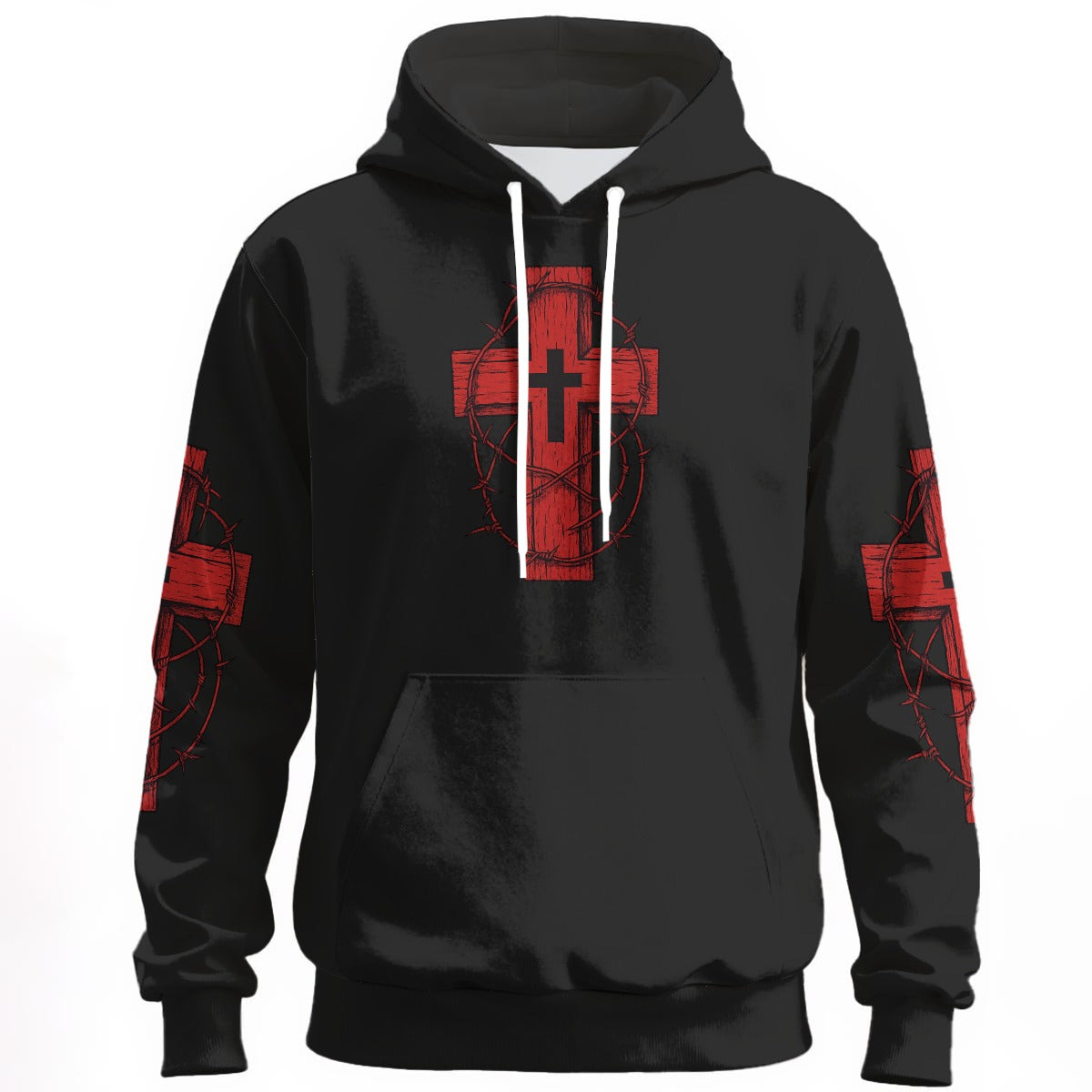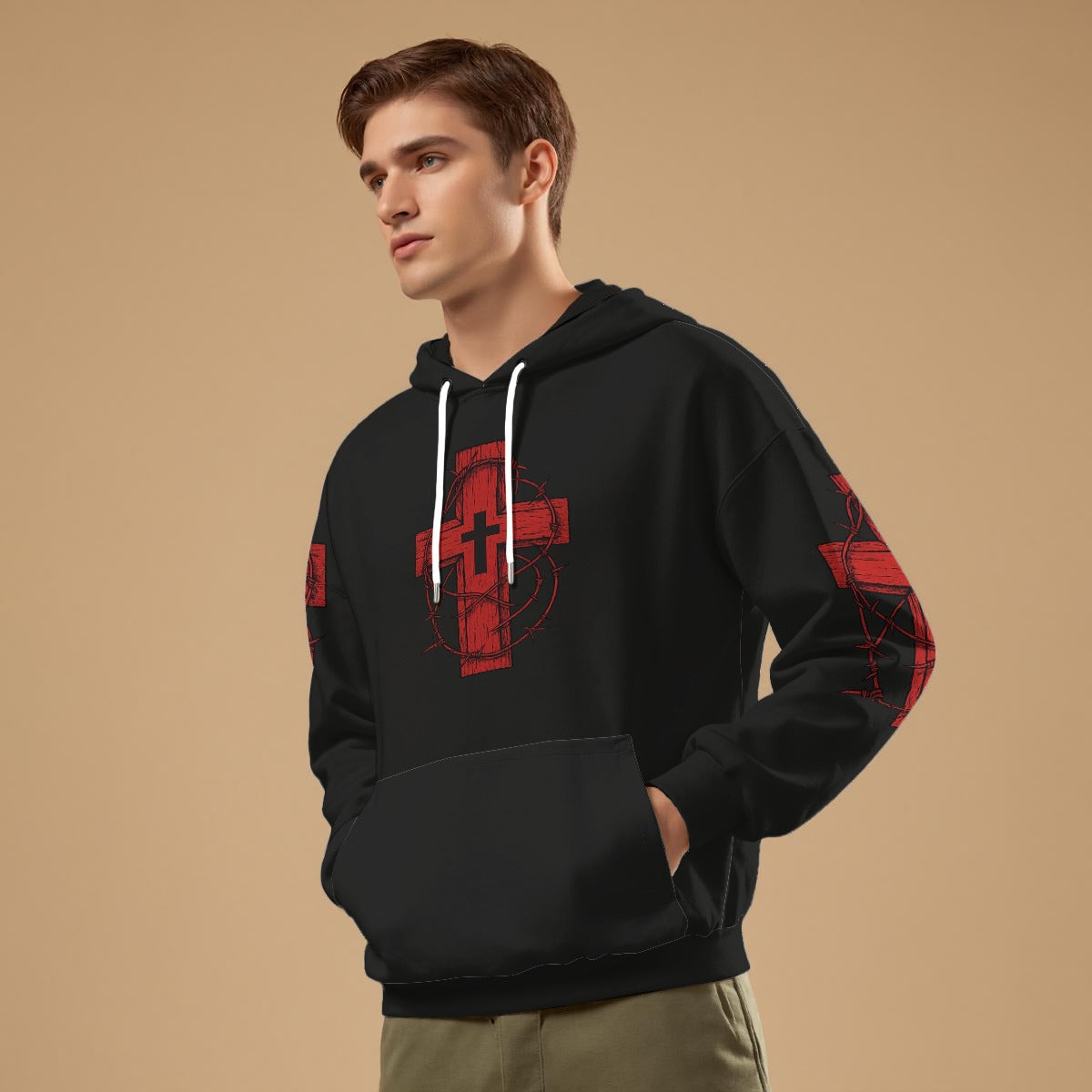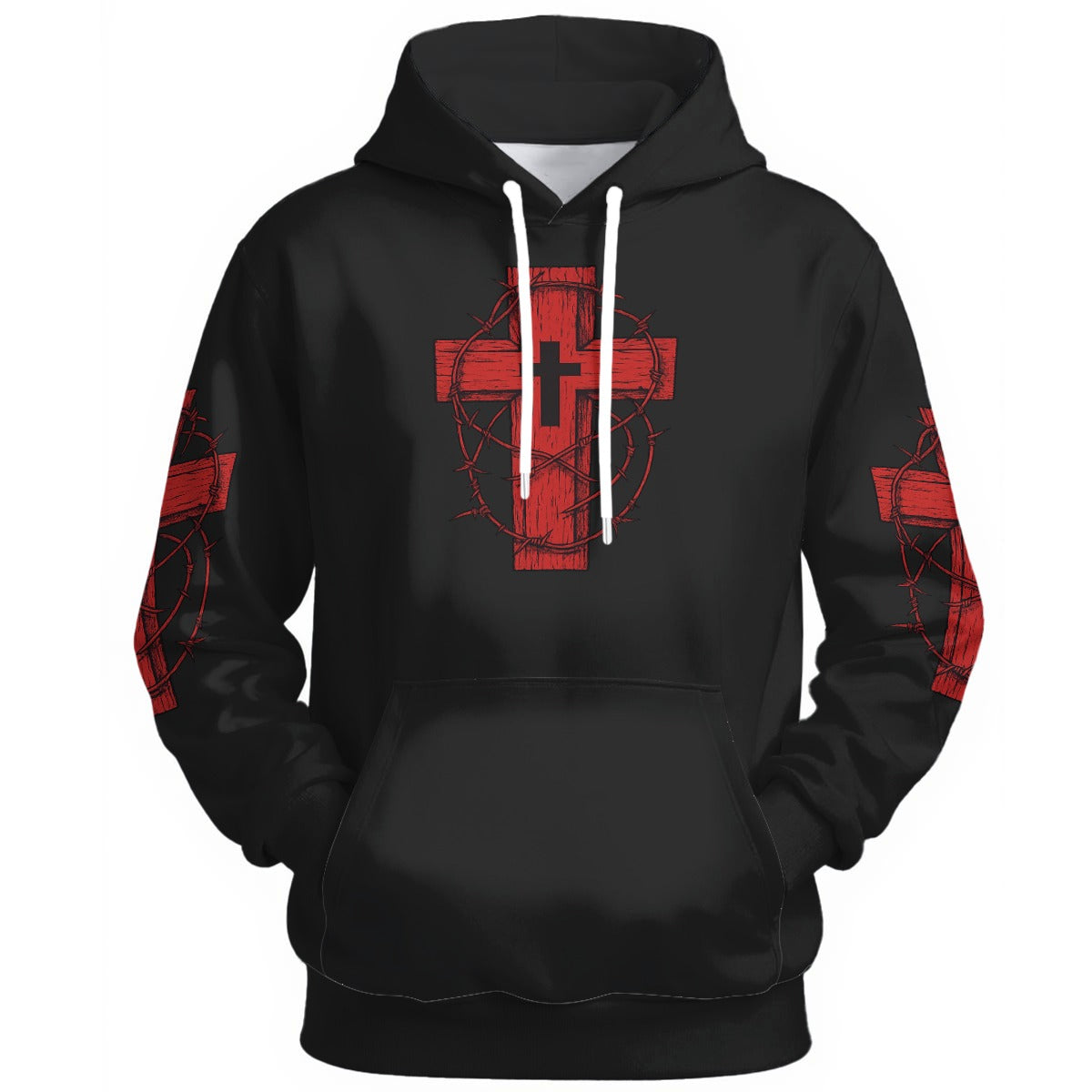 Hoodie gótico com cruz vermelha e coroa de espinhos
