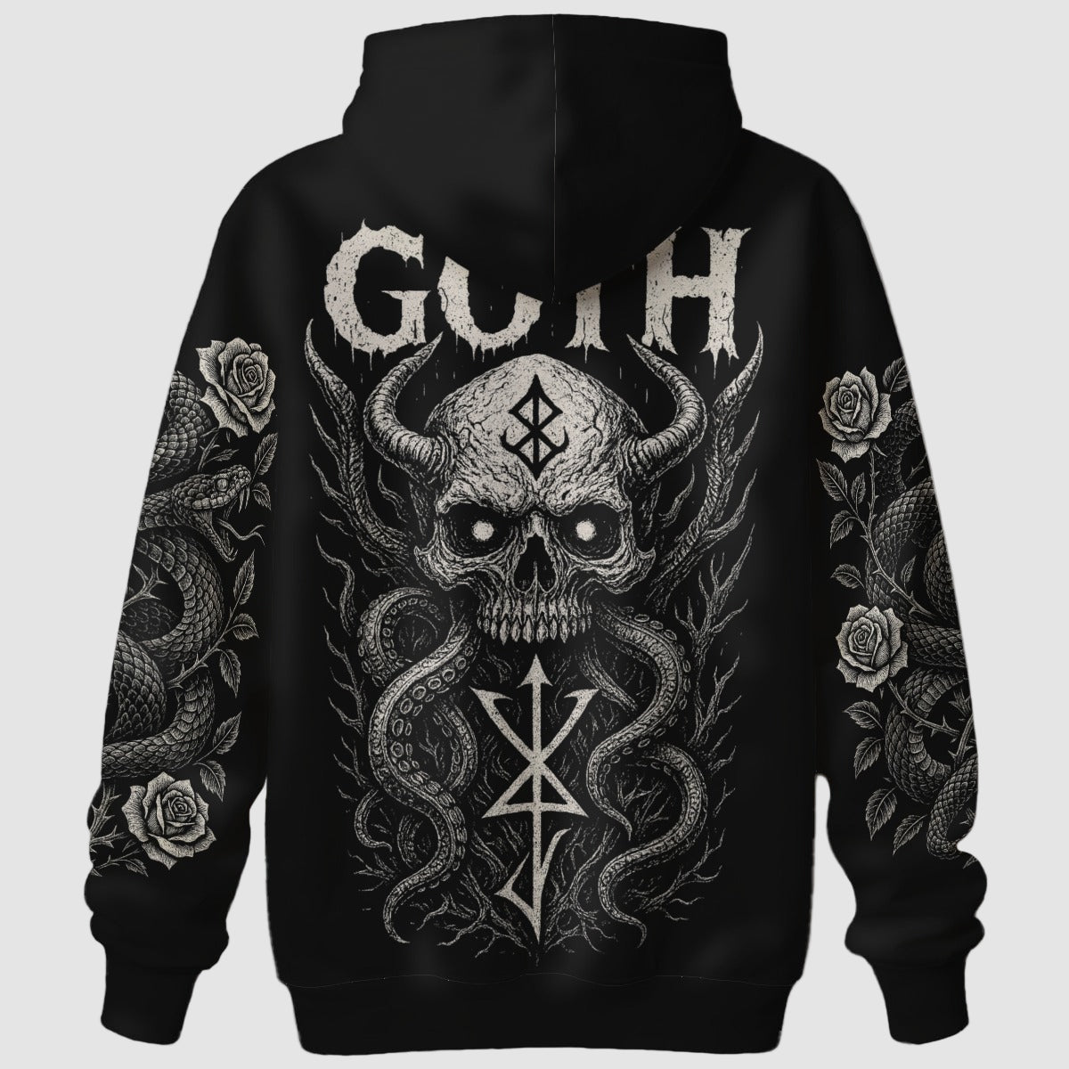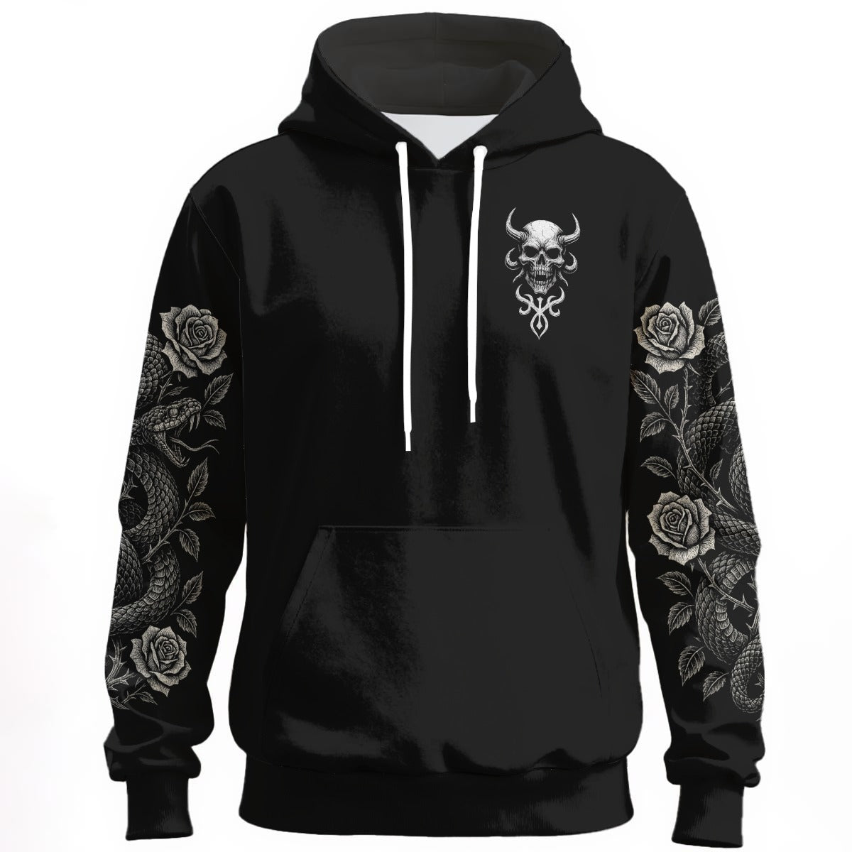 Exprima a sua individualidade com a exclusiva sweatshirt "The Serpent’s Oath" - criada a pensar nos amantes da estética gótica e da moda alternativa. O design escuro com motivo de caveira, serpentes e rosas simboliza força, mistério e paz interior. Não é apenas uma peça de roupa – é uma manifestação de estilo.