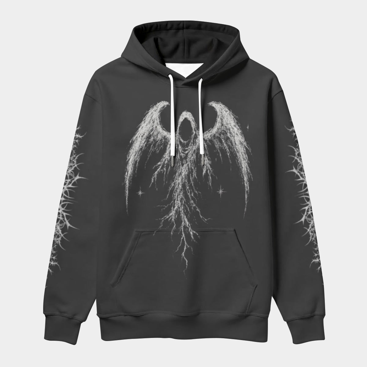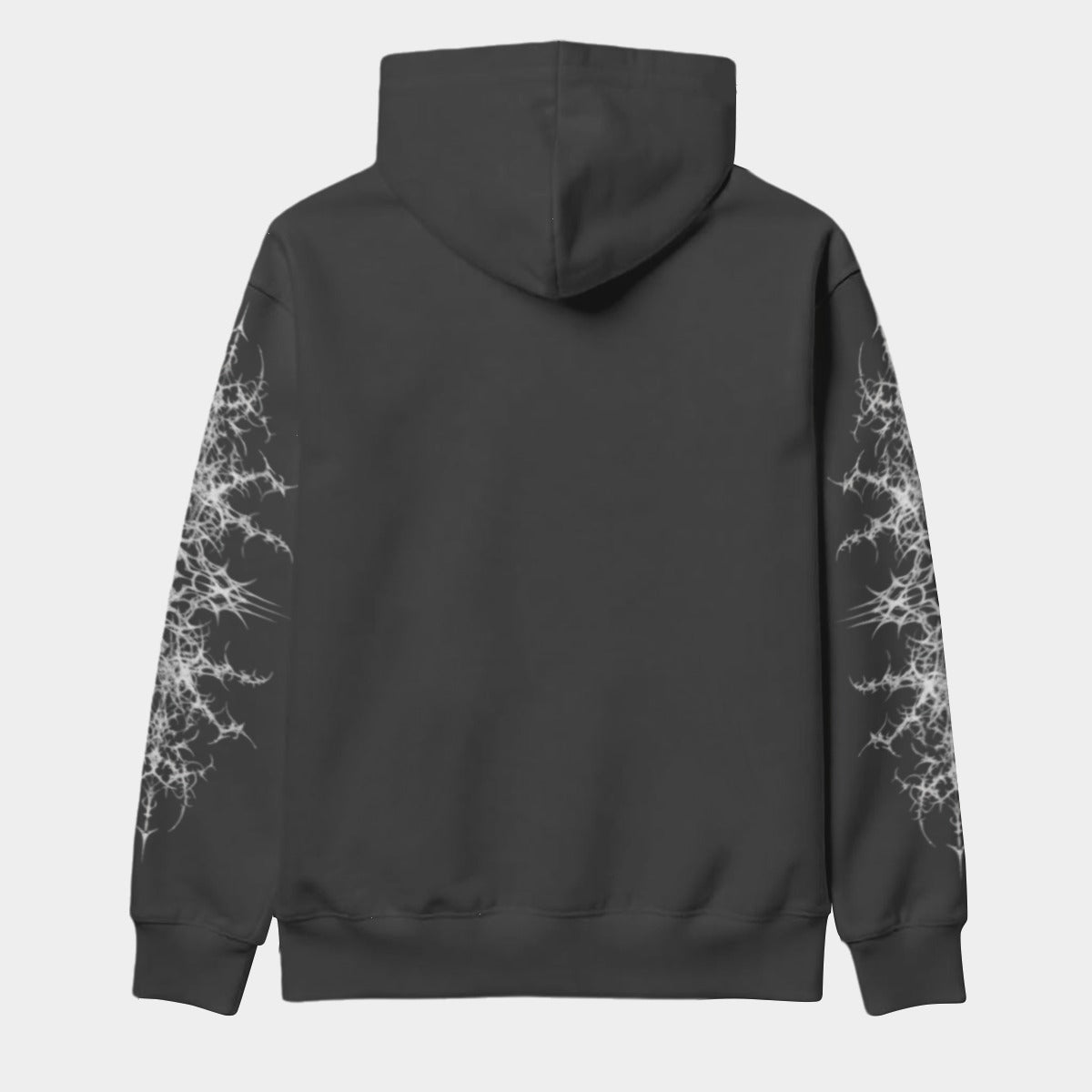 - Elementos: Cordão branco, bolso frontal e capuz interior preto