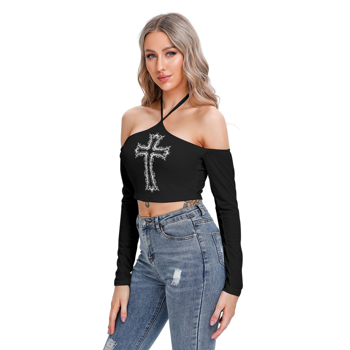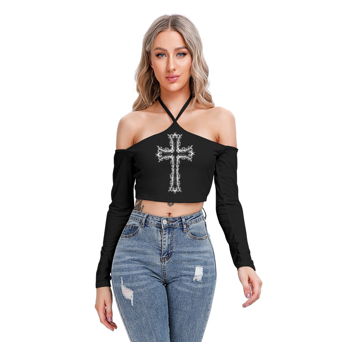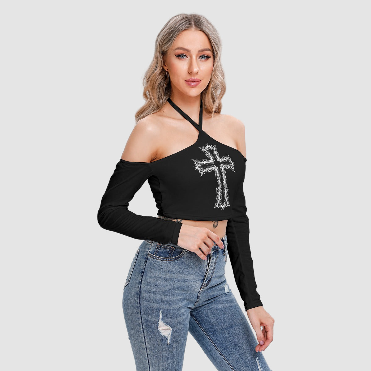 - Manga comprida, amarração no pescoço, ombros descobertos, parte frontal com forro
